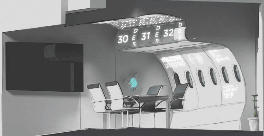 The challenge of combining the integration of original airplane parts, the implementation of a representative and innovate lighting system and an additional project mapping option into an individual room fitting, has been mastered by our team.