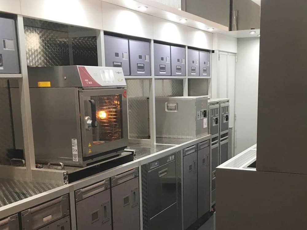 The customer commissioned us to conceptualize, manufacture and assemble a fully functional, full-size, yet nonetheless transportable and modular prototype of an onboard train kitchen, in order to perform functionality testing on replaceable kitchen components. This prototype required compatibility on a number of different ICE models. Prototype adaptability was also a requirement such as qualitative and quantitative adjustments to changes for example; amount of customers, amendment of offers etc.